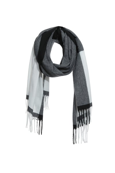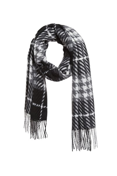 •Checkered scarf,•Fringe trim detail,•Fashion accessory
